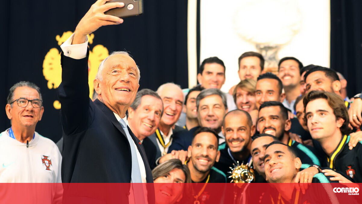 Marcelo Rebelo de Sousa recebeu hoje a seleção portuguesa de futebol de praia.