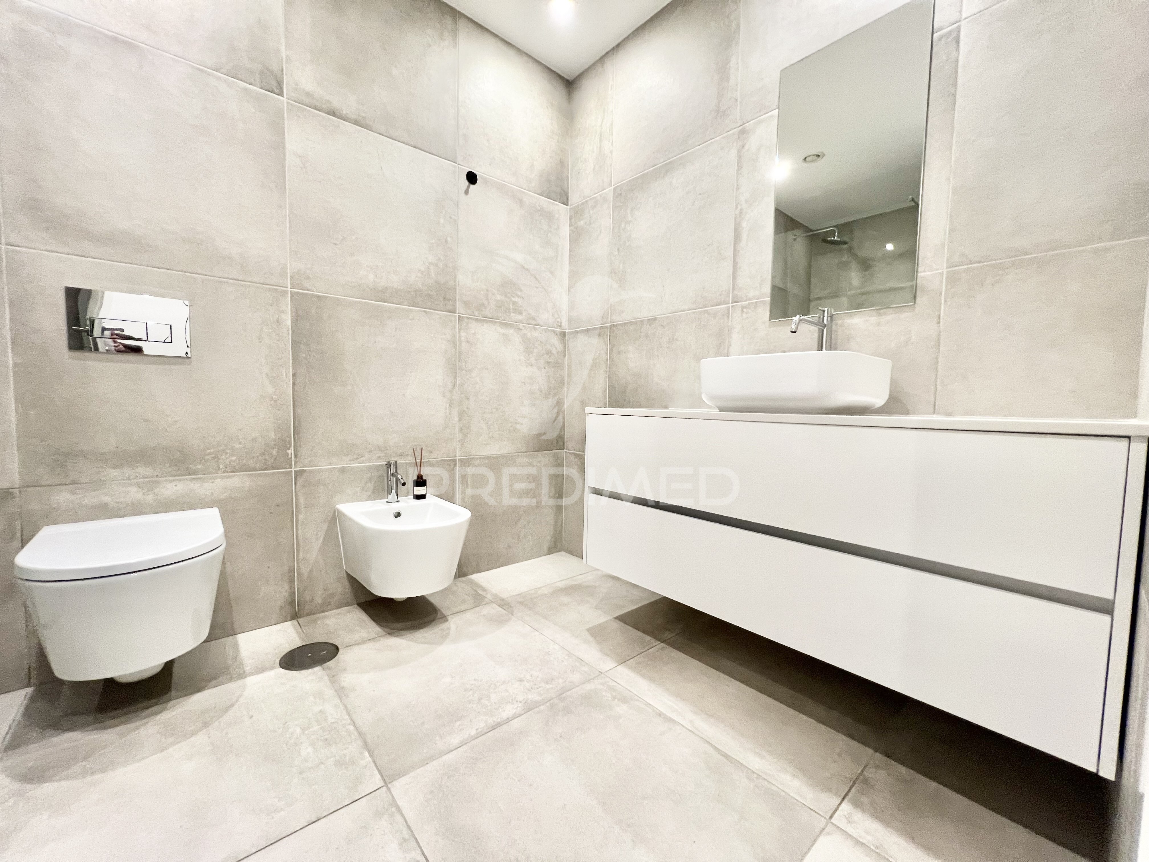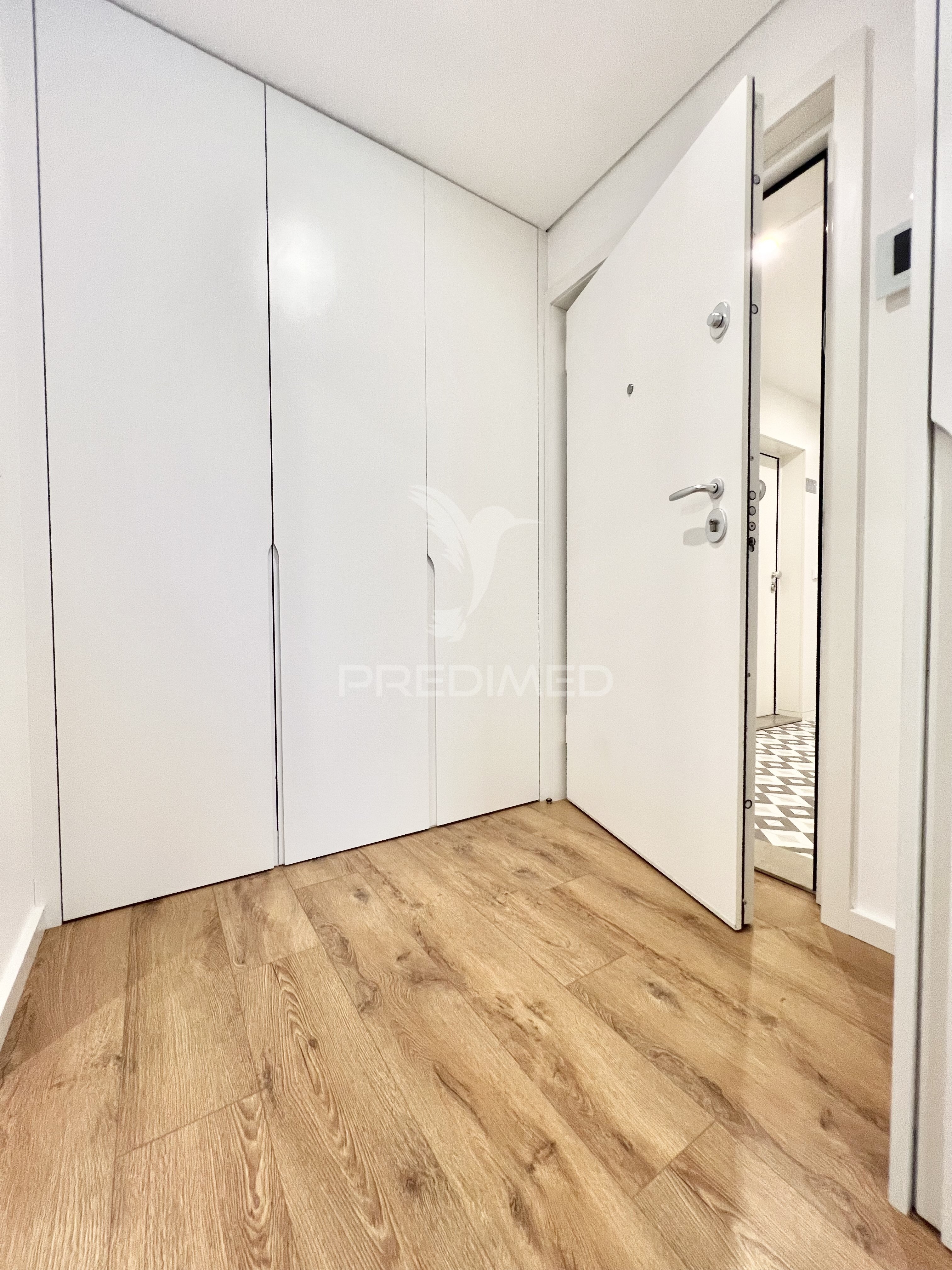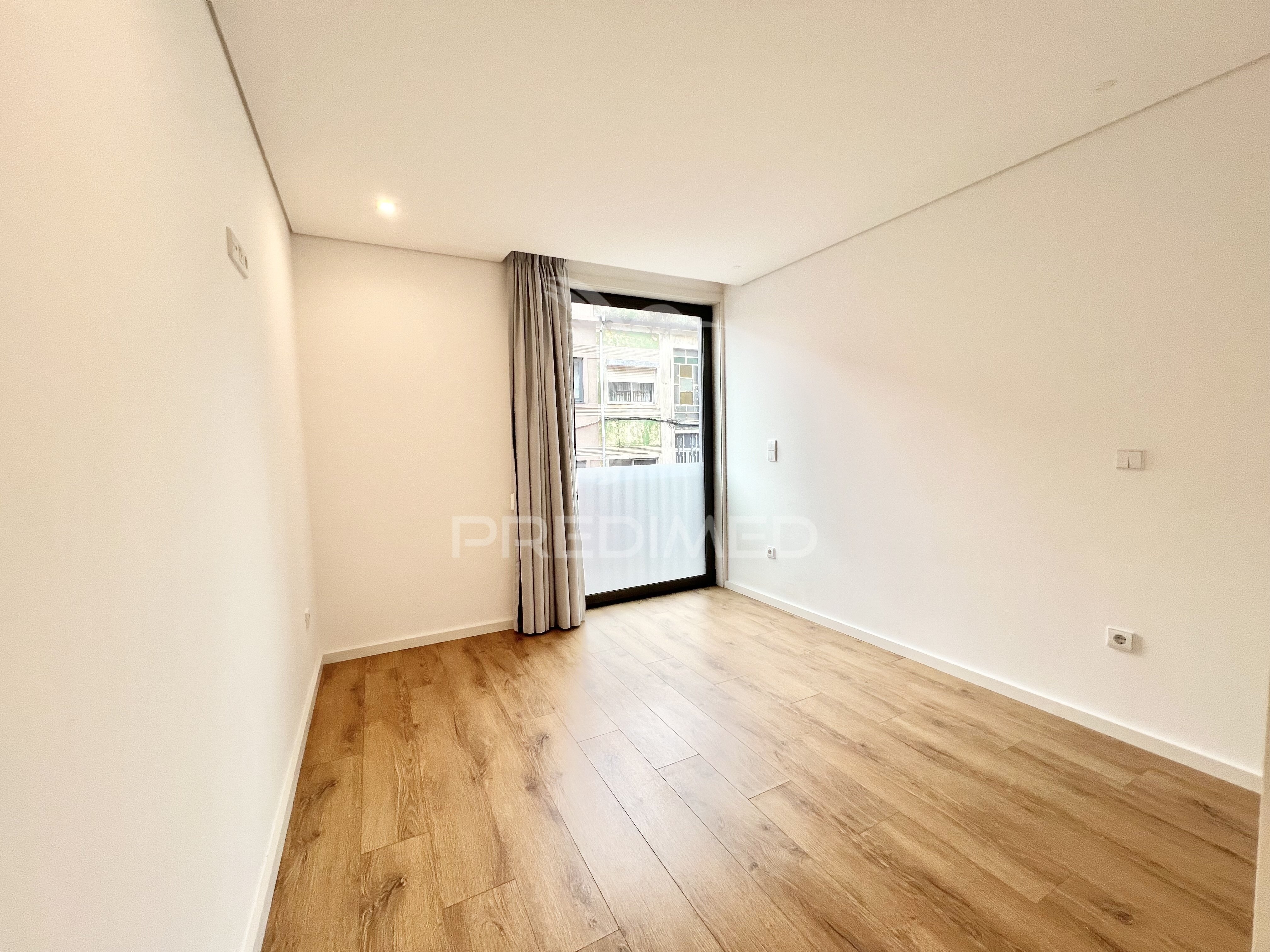 Apartamento T2 novo ao nível do R/C (elevado) na Azenha, Paranhos (próximo do Pólo Universitário), Porto.Exposição solar de uma frente a poente.O apartamento é composto por hall de entrada em open para a sala comum com kitchnett mobilada e equipada (Balay) com: exaustor, placa vitrocerâmica, forno eléctrico, microondas, frigorífico combinado e máquina de lavar louça.Os quartos têm roupeiros embutidos, sendo um deles suite.Os quartos de banho tem loiças sanitárias suspensas e bases de chuveiro com resguardo. O apartamento dispõe de:Bomba de calor para aquecimento de águas sanitárias.Gás canalizado.Pavimento flutuante AC5 na sala, quartos e zonas de corredor. Nas casas de banho e cozinha em cerâmico. Tetos falsos rebaixados em gesso cartonado e isolamento acústico com spots de led embutidos.Caixilharia é em alumínio com corte térmico e vidro duplo.O edifício tem rede interior de telecomunicações, com tomadas por toda a casa. *Porta de segurança e vídeo porteiro a cores.O edifício dispõe de iluminação LED inteligente nas zonas comuns, elevador seletivo na subida e descida.Facilidade de acesso a pessoas com mobilidade reduzida.Portas corta-fogo nos acessos aos patamares das habitações, entrada e cave.A garagem tem os lugares de estacionamento e percursos pedonais marcados, portão metálico seccionado e motorizado, acionado por comando, e zonas de segurança contra incêndio e ventilação. O empreendimento, de arquitetura moderna, localizado numa área residencial, na proximidade do Polo Universitário e do Parque da Asprela, bem como das Faculdades de Engenharia, Economia, Medicina e Desporto da Universidade do Porto, UPTEC, Escola Superior de Educação do Politécnico do Porto e da Liga Portuguesa Contra o Cancro.Dispõe no espaço envolvente de uma diversificada oferta de serviços: Hospital de São João, IPO, Clínica Invicta Saúde, análises clínicas e meios auxiliares de diagnóstico, estabelecimentos de ensino de diferentes ciclos, bancos, ATM, correio, farmácia, ginásio, etc., bem como de diversos estabelecimentos comerciais: cafés, padarias, confeitarias, frutarias, talhos, peixarias, supermercados (Continente, Froiz, Pingo Doce e Lidl), restaurantes, esplanadas, cabeleireiros, tabacarias, lavandarias, pronto-a-vestir, assim como outras lojas de comércio tradicional, etc..O edifício está inserido numa zona servida por transportes públicos: metro, autocarros e táxis, e com fáceis acessos ao centro do Porto, à VCI, à Estrada da Circunvalação, às principais vias de entrada e saída da cidade, e às autoestradas quer para norte quer para sul do paísPredimed Imobiliária, Mediação Imobiliária, Lda.Avenida Brasil 43, 12º Andar, 1700-062 LisboaLicença AMI nº 22503Pessoa Coletiva nº 517 239 345Seguro Responsabilidade Civil: Nº de Apólice RC65379424 Fidelidade