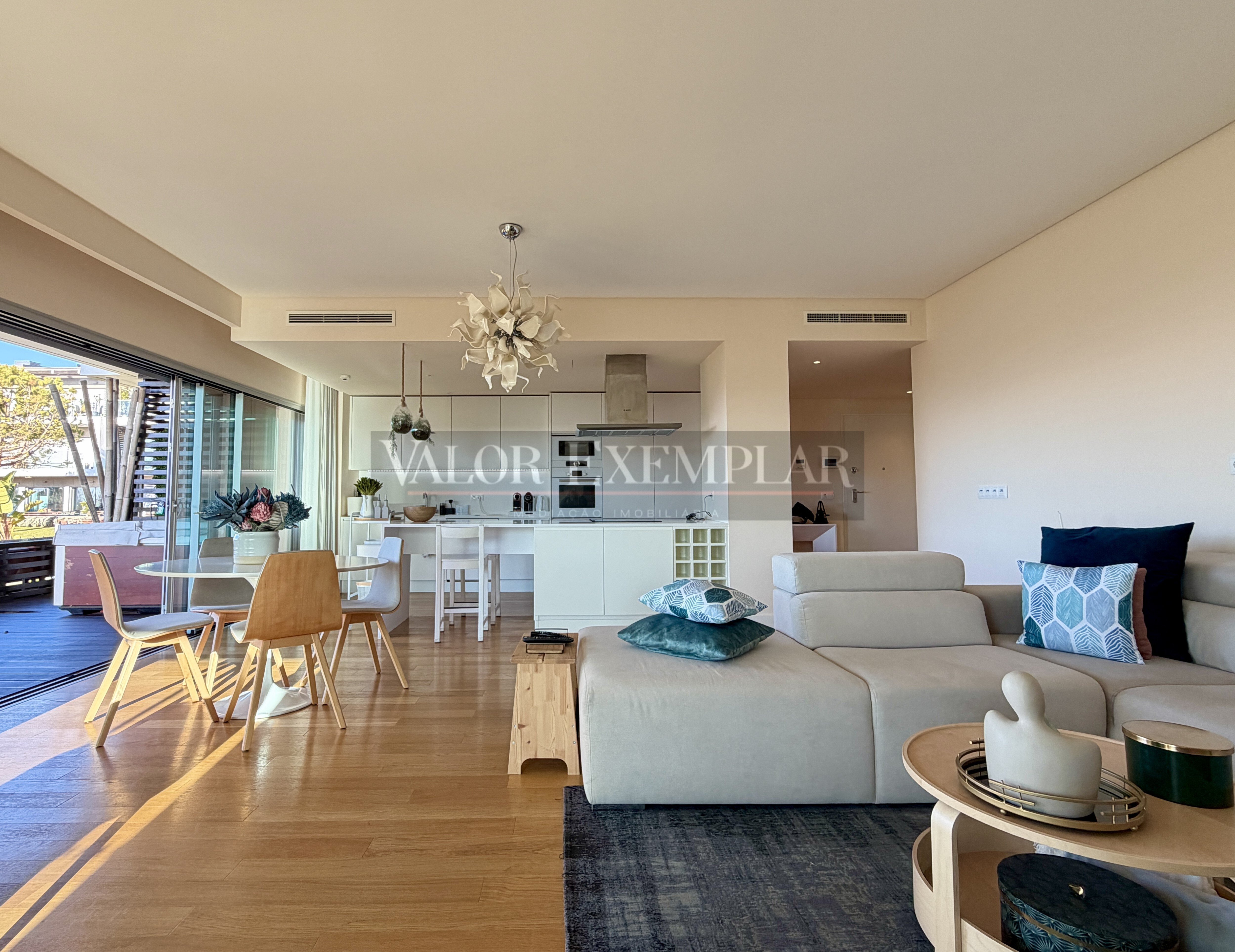 Apartamento T4 de Luxo em Condomínio Privado – Frente Rio Tejo | Alcochete Apartamento de habitação em excelente estado de conservação, inserido em condomínio fechado com serviços e segurança, localizado numa das zonas mais privilegiadas de Alcochete, junto à Reserva Natural e às Salinas, a apenas 50 metros da praia e do Rio Tejo, com acesso direto ao areal da Praia dos Moinhos. Com 3 frentes e exposição solar otimizada (nascente/poente), o imóvel beneficia de vistas deslumbrantes sobre o rio, permitindo desfrutar do nascer e pôr-do-sol em total harmonia com a natureza. A residência, moderna e energeticamente eficiente (Classe Energética B-), dispõe de 173 m² de área bruta privativa e apresenta uma ambiência contemporânea, sendo vendida totalmente mobilada e equipada. Composição do imóvel: 4 quartos, sendo 1 em suite, todos com roupeiros embutidos 3 instalações sanitárias Cozinha totalmente equipada com eletrodomésticos Bosch e outros Ar condicionado em todas as divisões Diversos armários e soluções de arrumação Espaços exteriores: 20 m² de área ajardinada exterior 80 m² de terraços (nascente/poente) Jacuzzi privado exterior Arrecadação Estacionamento: 2 lugares de estacionamento coberto, já com ligação para carregamento elétrico (e-charge) Imóvel em estado praticamente novo, ideal para quem procura conforto, exclusividade e um estilo de vida diferenciador, combinando tranquilidade, natureza e conveniência urbana — com elevado potencial residencial e turístico.