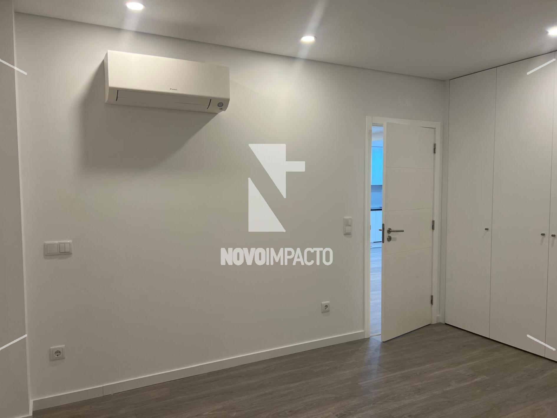 Apartamento T1 NOVO, disponível para ARRENDAMENTO À entrada do Montijo, a 15 minutos de Lisboa e a 3 minutos da Ponte Vasco da Gama Cozinha e Sala em openspace Quarto com roupeiro WC completo com base duche Características: - Cozinha totalmente equipadas com eletrodomésticos Bosch - Janelas em alumínio oscilobatente e com vidro duplo - Estores elétricos e térmicos - Portas interiores lacadas a branco - Loiças suspensas - Vídeo porteiro - Entrada codificada - Tetos falsos na totalidades dos apartamentos com iluminação led - Aspiração central - Piso flutuante - Ar condicionado - Esquentador - Painéis solares CONDIÇÕES: - 2 rendas - 2 caução - Apresentação obrigatória de Fiadores